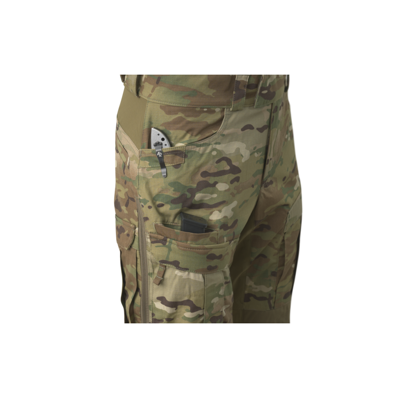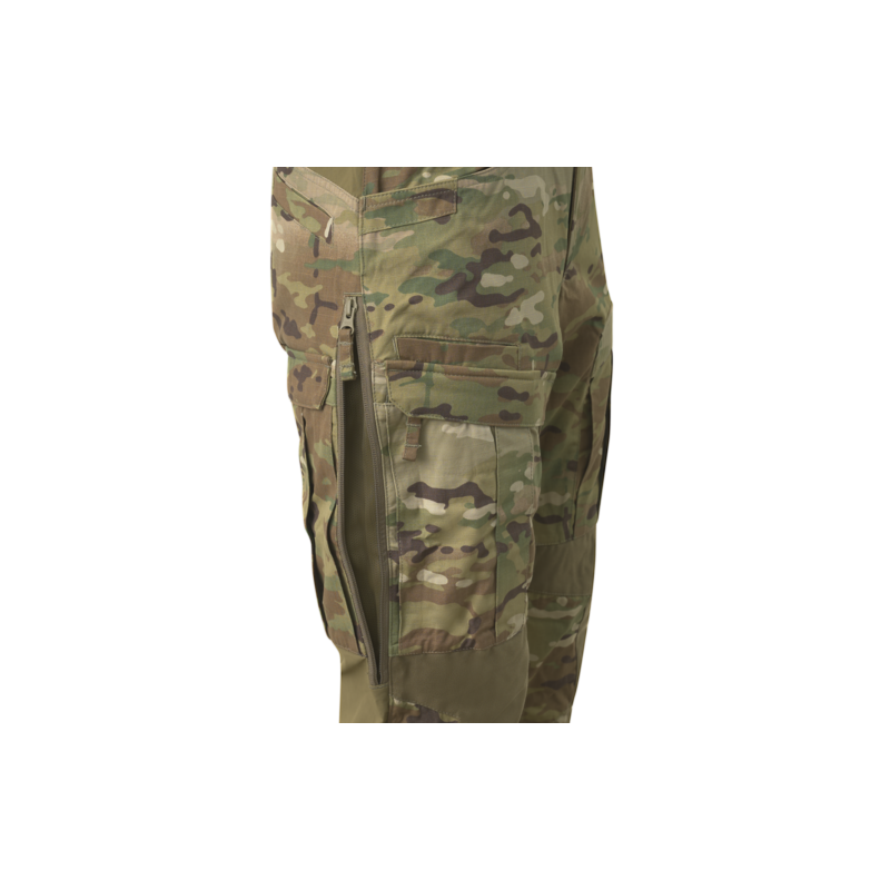 Los pantalones MCDU (Modern Combat Duty Uniform) son nuestra respuesta a las expectativas de un uniforme de combate moderno. Junto con la camisa de combate MCDU, forman la primera piel del usuario, ofreciendo máxima comodidad y funcionalidad en cualquier condición. Como material base, utilizamos patrones de camuflaje NyCo Ripstop Multicam®. En zonas clave (cintura, entrepierna y parte posterior de las rodillas), utilizamos inserciones de material Versastrech. Este material se seca rápidamente y ofrece una alta transpirabilidad. La zona de las rodillas está reforzada con tejido Cordura 500D con ranuras para inserciones protectoras. Gracias a los cordones adicionales, ubicados bajo la rodilla y en la parte inferior de la pierna, los pantalones se ajustan fácilmente. El diseño de los pantalones está inspirado en el uniforme polaco de las tropas aerotransportadas, desarrollado a finales de la década de 1950. Un total de 12 bolsillos permiten organizar el equipo. Esta solución hace que los pantalones sean aún más funcionales, especialmente en días cálidos o durante largas caminatas.