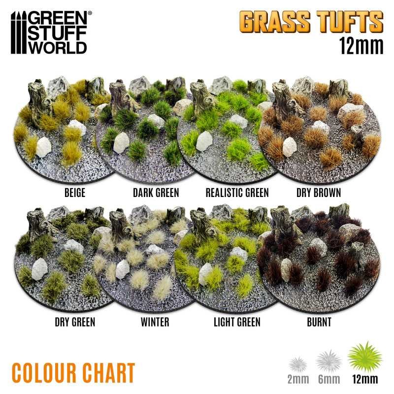 Este set ofrece mechones de césped estático de 12 mm en un tono marrón quemado, ideal para recrear escenarios realistas de vegetación marchita o quemada. Se trata de una solución perfecta para dar textura y volumen a dioramas, bases de miniaturas o maquetas, especialmente cuando quieres reflejar zonas deterioradas, áridas o dañadas por el fuego.