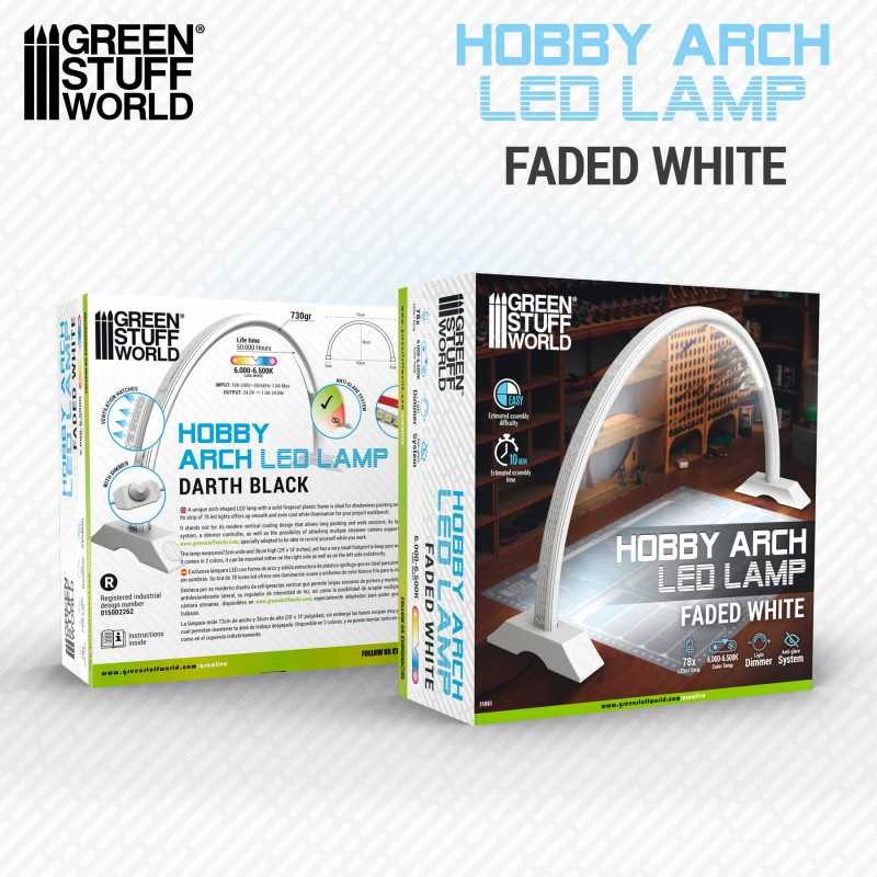 La lámpara de arco LED Faded White combina un diseño pensado para trabajos de precisión (modelismo, pintura, fotografía de mesa, etc.) con una estructura profesional que asegura iluminación homogénea, reducida proyección de sombras y gran confort visual. Su formato en arco permite cubrir de forma amplia la superficie de trabajo, facilitando una visión clara del plano de trabajo desde múltiples ángulos.