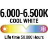 Vida útil estimada: alrededor de 50.000 horas, lo que implica una longevidad superior frente a lámparas tradicionales.