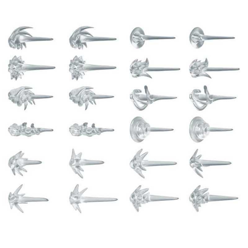 Aplicación sugerida: se pueden engrapar o pegar en el cañón de armas de miniaturas o sobre dioramas para simular disparos futuristas.