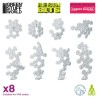Este set está pensado para aportar un efecto visual de defensa energética futurista a tus miniaturas o dioramas de ciencia ficción. Se compone de “escudos de energía” transparentes con forma hexagonal o de impacto que simulan barreras defensivas, lo que permite recrear escenas de combate avanzadas con un toque de tecnología de otro mundo.