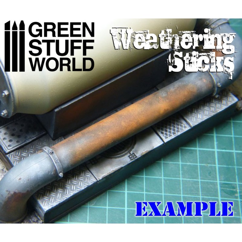 Uso previsto: ideal para aplicar efectos de envejecido, texturas, desgaste, suciedad, óxido, pigmentos o lavados en modelos, dioramas, figuras, maquetas u otras superficies que requieran técnicas de desgaste realistas.